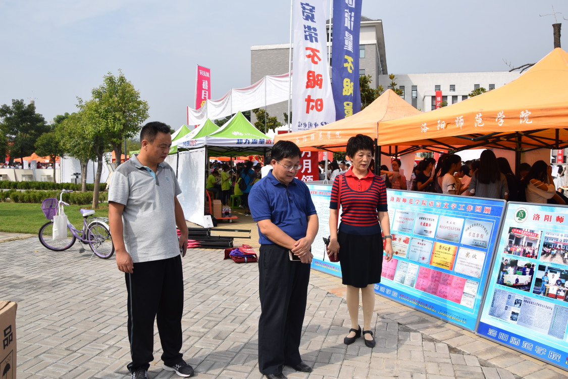 “普通话与汉语同行”宣传活动于迎接新生期间在桃园广场拉开了序幕。宣传活动开展期间,洛阳师范学院语委主任宋文献副校长在教务长赵邦屯、语委副主任赵江、文学院副书记朱胜利的陪同下到活动现场指导推广宣传工作。